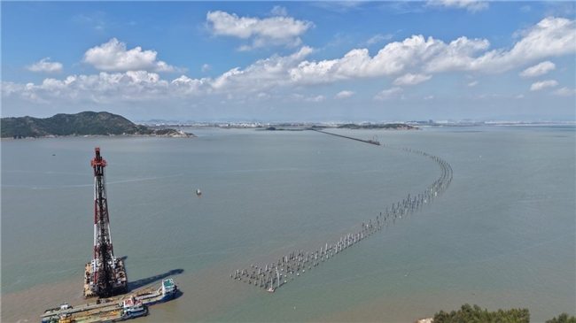 台州灣水域環境複雜,風浪大,施工面臨極大考驗,為了高效推進海上沉樁作業,中交三航局台州灣陸島聯動項目測量團隊分秒必爭,搶抓颱風過境前的視窗期、大潮汛間隙的平靜期等沉樁作業黃金時段。