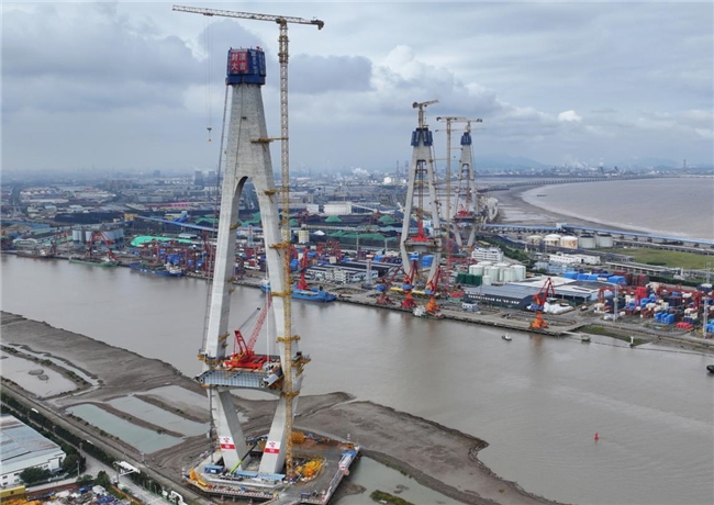 此次甬江特大橋主塔順利封頂,為後續鋼混組合梁大懸臂施工安全度過颱風期提供了可靠的時間保障,大橋預計在明年7月前實現全線貫通。